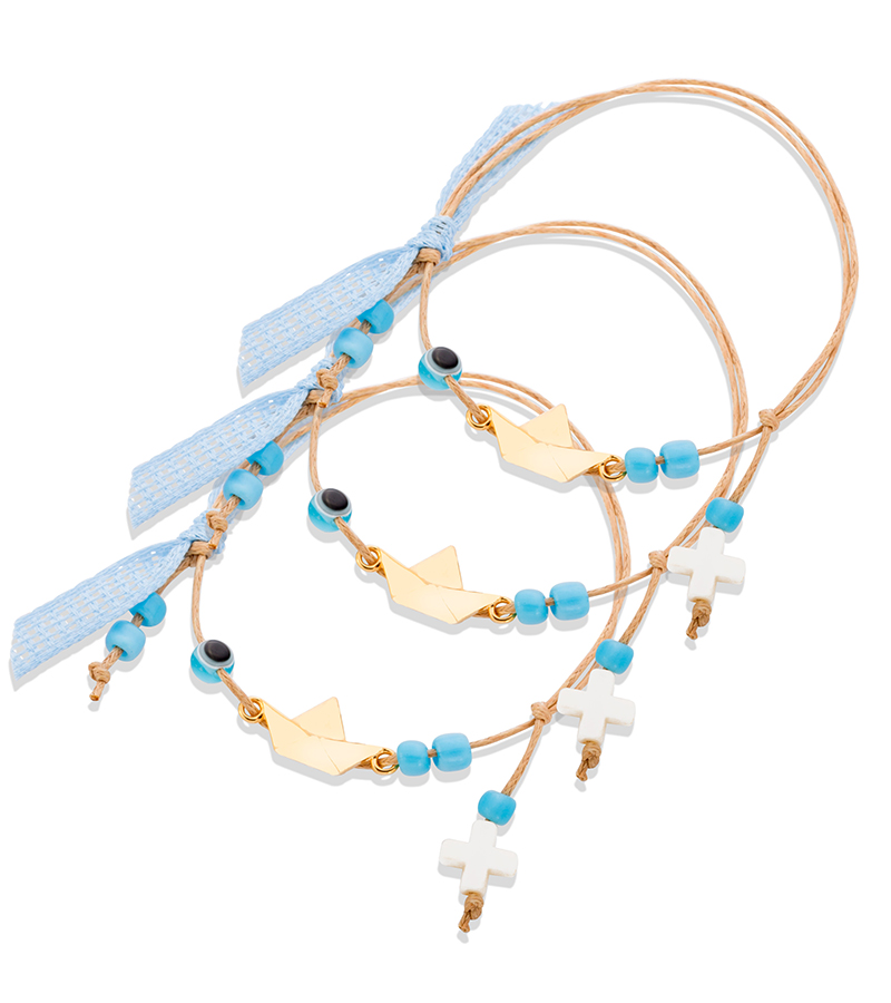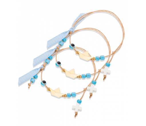 Βραχιόλι με επίχρυσο 24Κ καραβάκι και ακρυλικό σταυρό.