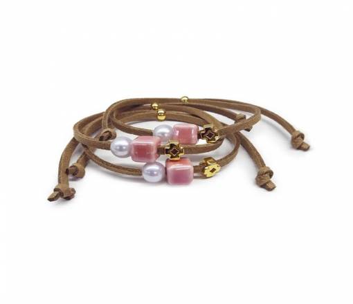 Σουέτ βραχιόλι με κεραμεική χάντρα και επίχρυσο σταυρό 24κ.