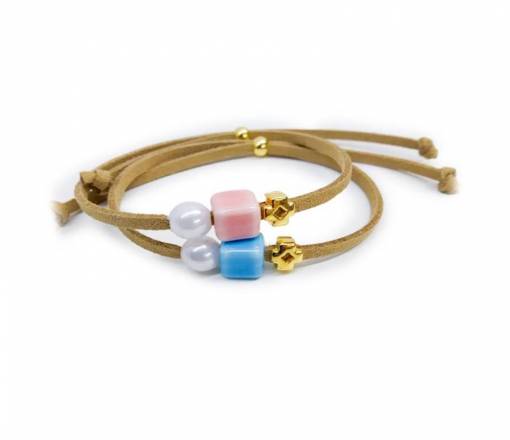Σουέτ βραχιόλι με κεραμεική χάντρα και επίχρυσο σταυρό 24κ.