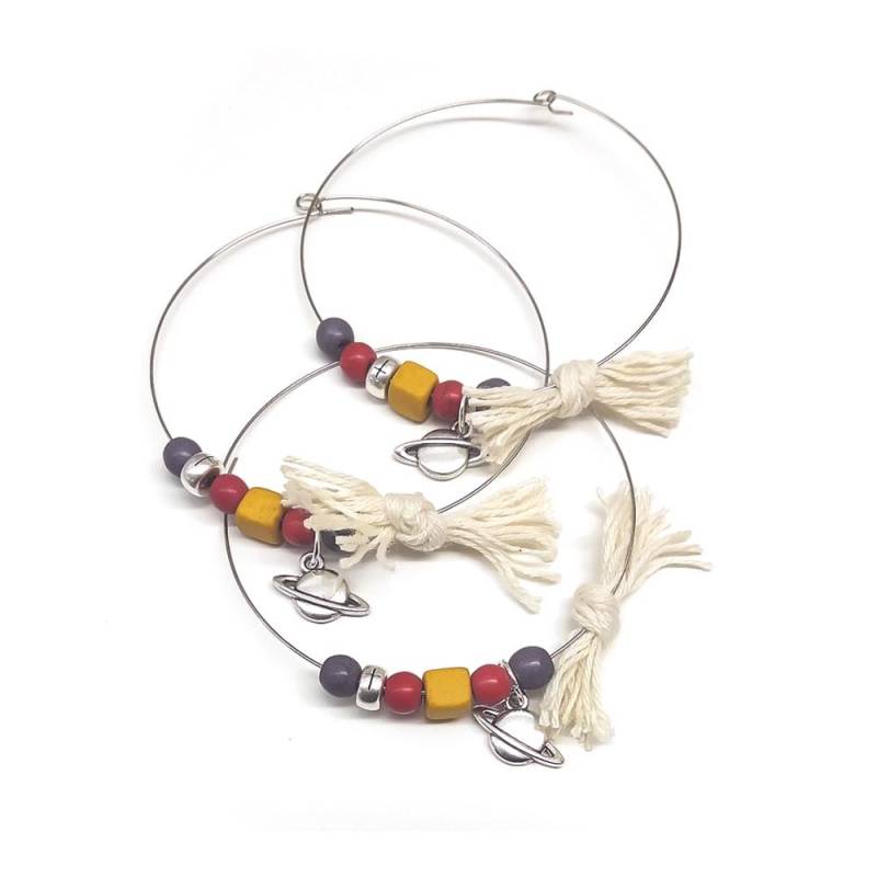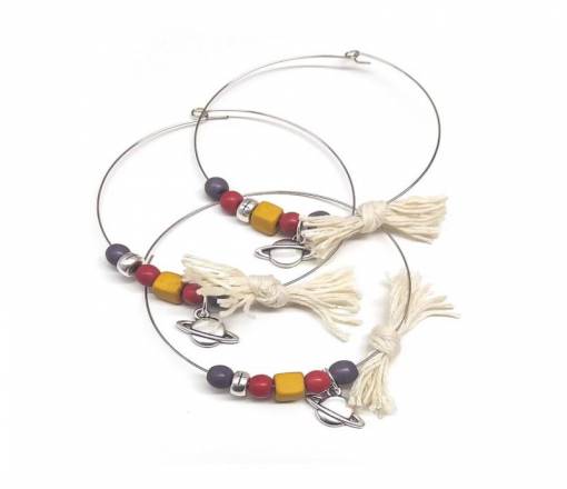 Επάργυρη χειροπέδα πλανήτης με κεραμεική χάντρα και επάργυρα στοιχεία.
