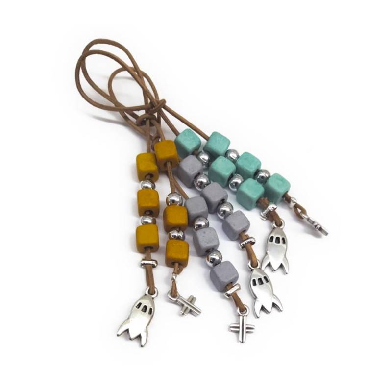 Μπεγλέρι διαστημόπλοιο με κεραμεικές χάντρες και επάργυρα στοιχεία.