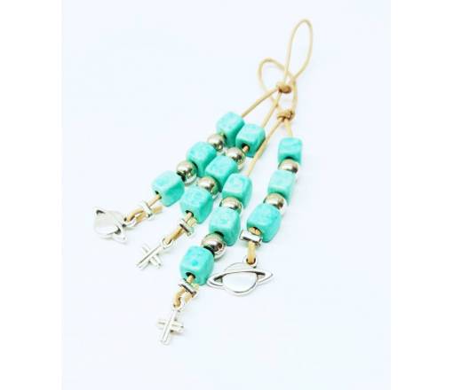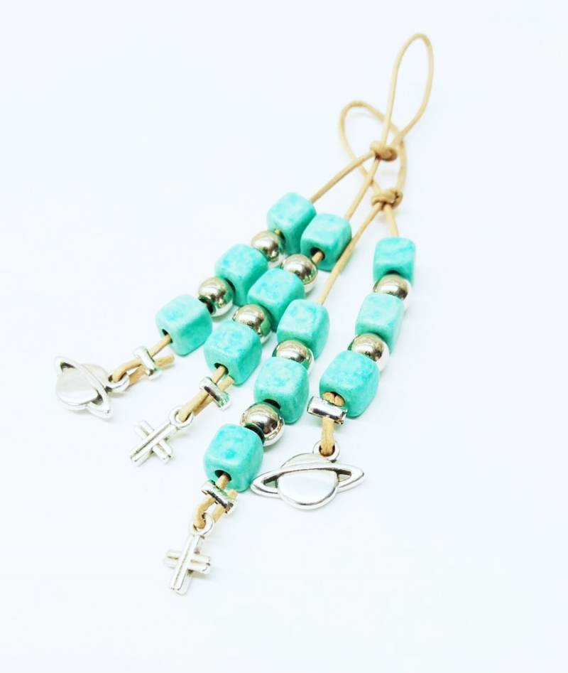 Μπεγλέρι πλανήτης με κεραμεικές χάντρες και επάργυρα στοιχεία.