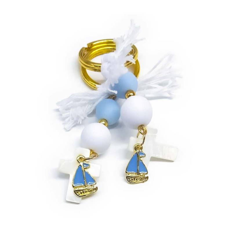 Μπρελόκ επίχρυσο σμάλτο καραβάκι με φίλντισι σταυρό.