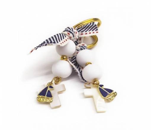 Μπρελόκ επίχρυσο σμάλτο καραβάκι με φίλντισι σταυρό.