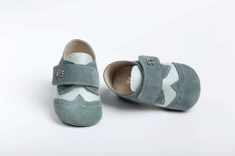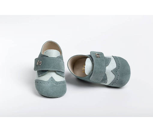 Α2201Β Παπουτσάκι αγκαλιάς χαμηλό από δέρμα και ύφασμα σε χρώμα μέντα, κλείσιμο με Velcro, νούμερα 16-19