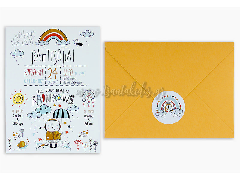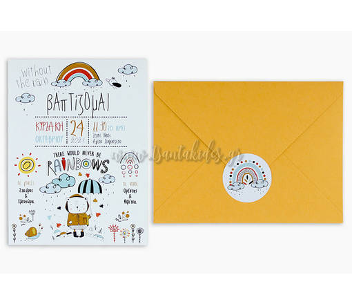 Προσκλητήριο βάπτισης για αγόρι με θέμα τη βροχή και το ουράνιο τόξο. Το προσκλητήριο