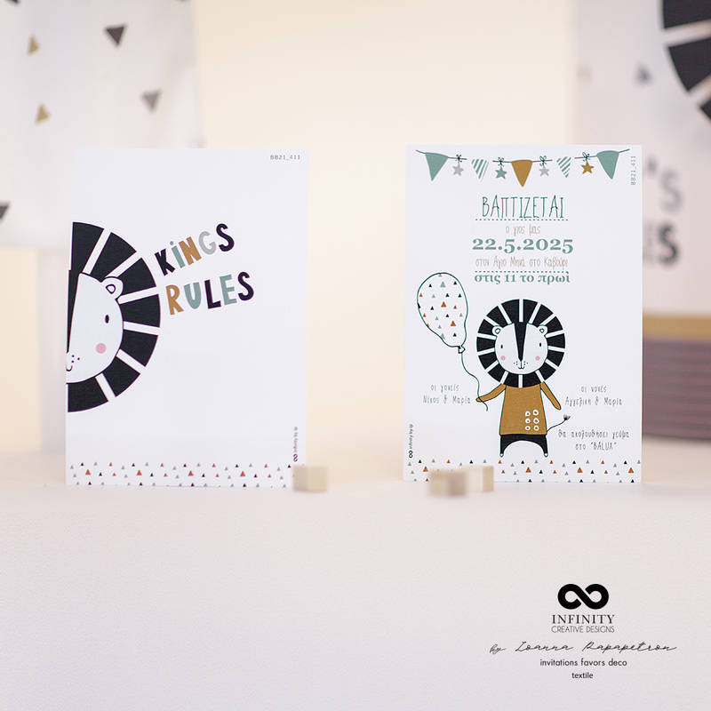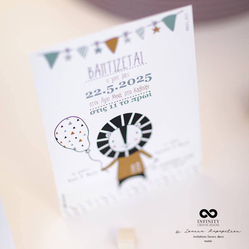 Προσκλητήριο βάπτισης με θέμα ' Λιοντάρι '