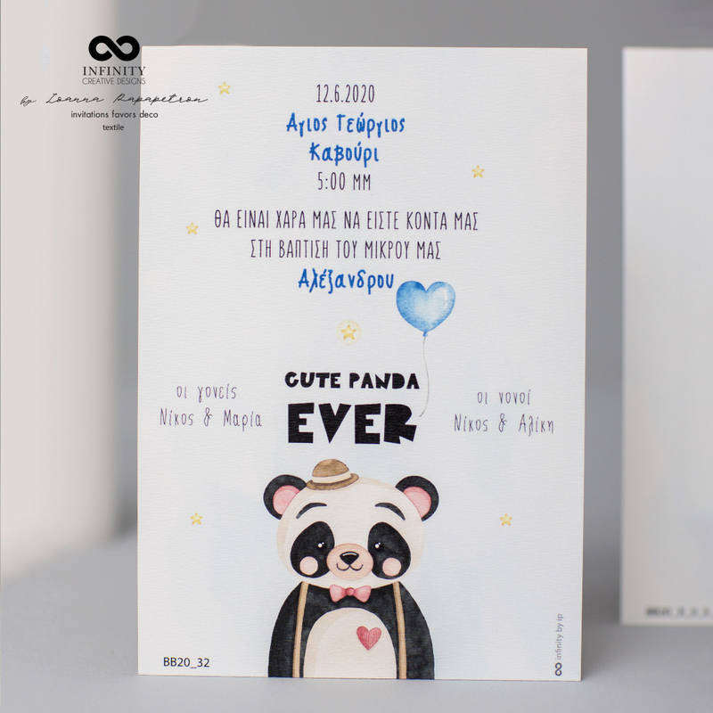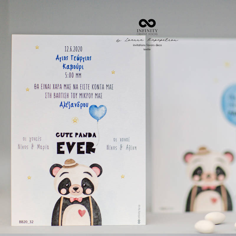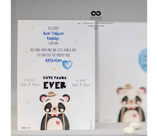 Προσκλητήριο βάπτισης με θέμα ' Panda '