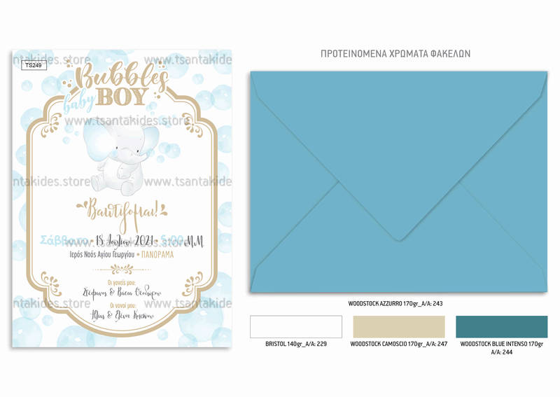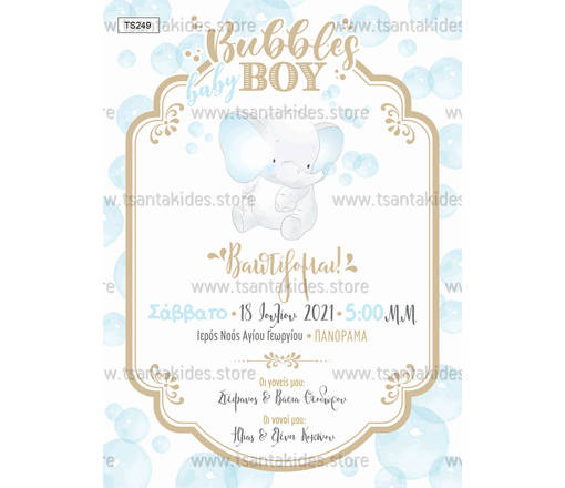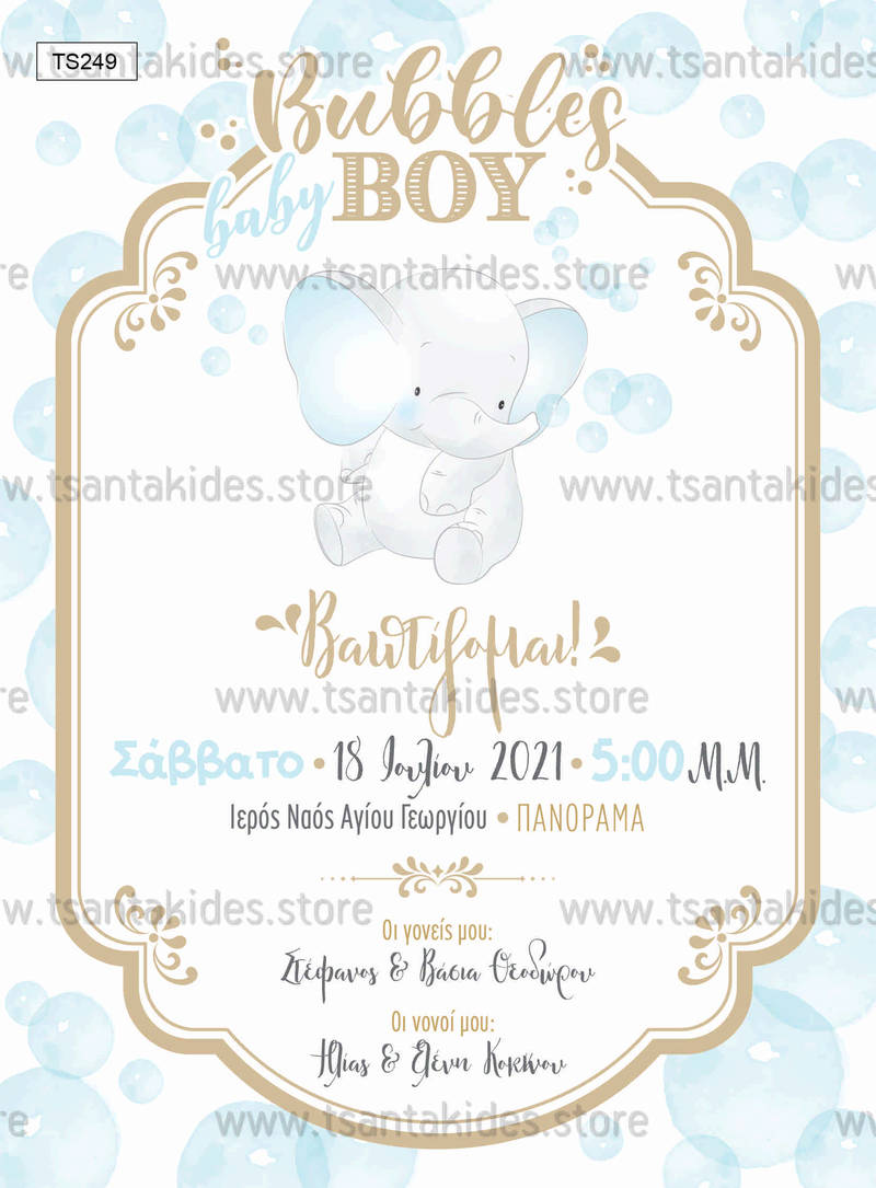 Προσκλητήριο βάπτισης για αγόρι με θέμα το μικρό ελεφαντάκι. Η κάρτα του