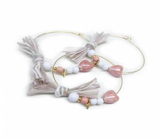 Επίχρυση χειροπέδα με κεραμεική καρδιά και επίχρυσο σταυρό.
