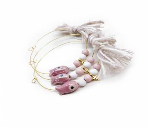 Επίχρυση χειροπέδα με κεραμεικό ψαράκι και επίχρυσο σταυρό.