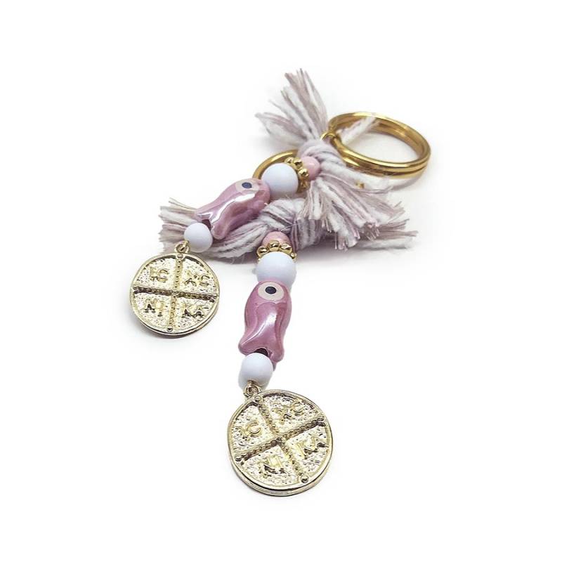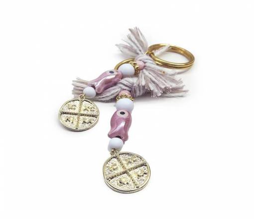 Μπρελόκ με κεραμεικό ψαράκι και επίχρυσο κωνσταντινάτο.