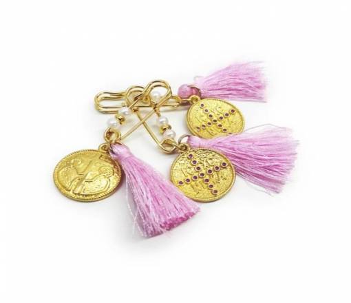 Παραμάνα πέτου με επίχρυσο σμάλτο κωνσταντινάτο 24κ και φουντάκι.