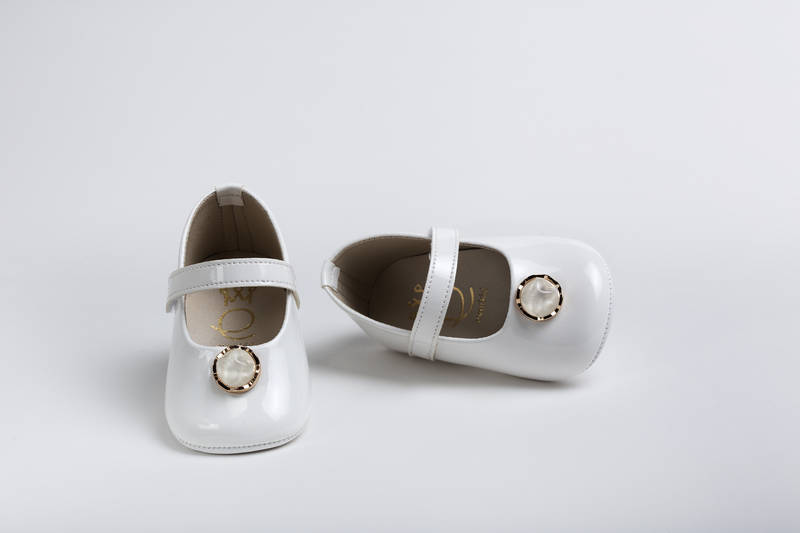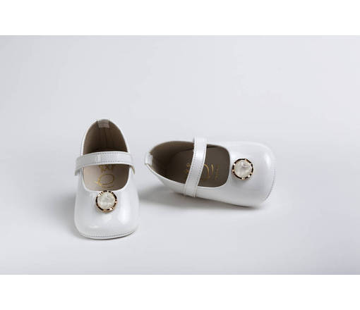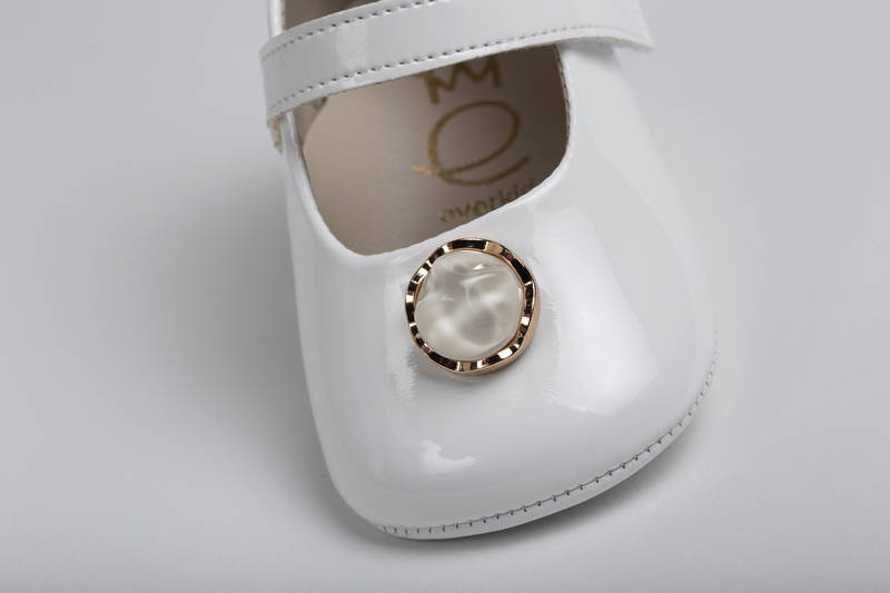 K2200Α Μπαλαρίνα αγκαλιάς από λευκό λουστρίν, διακοσμημένη με συνθετικό λίθο και χρυσή λεπτομέρεια, κλείσιμο με Velcro