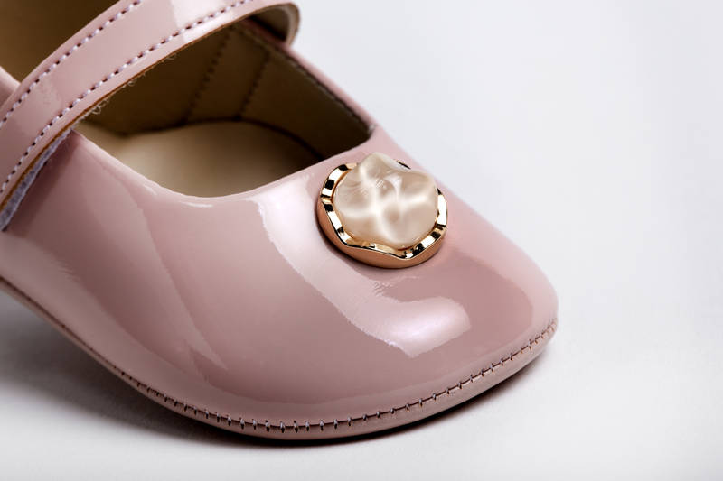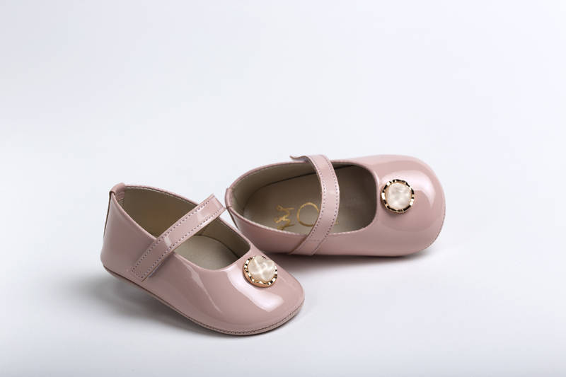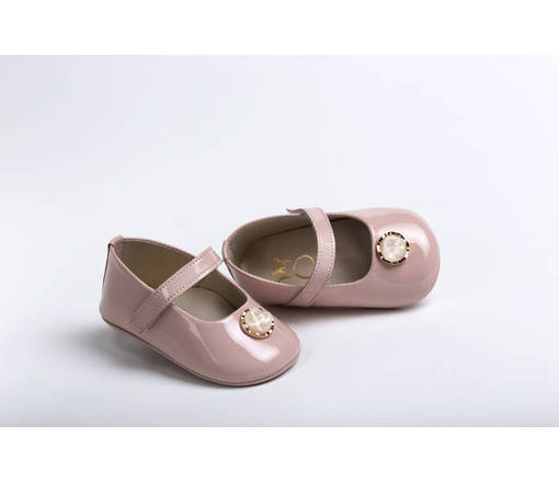 K2200Ρ Μπαλαρίνα αγκαλιάς από ροζ λουστρίν, διακοσμημένη με συνθετικό λίθο και χρυσή λεπτομέρεια, κλείσιμο με Velcro