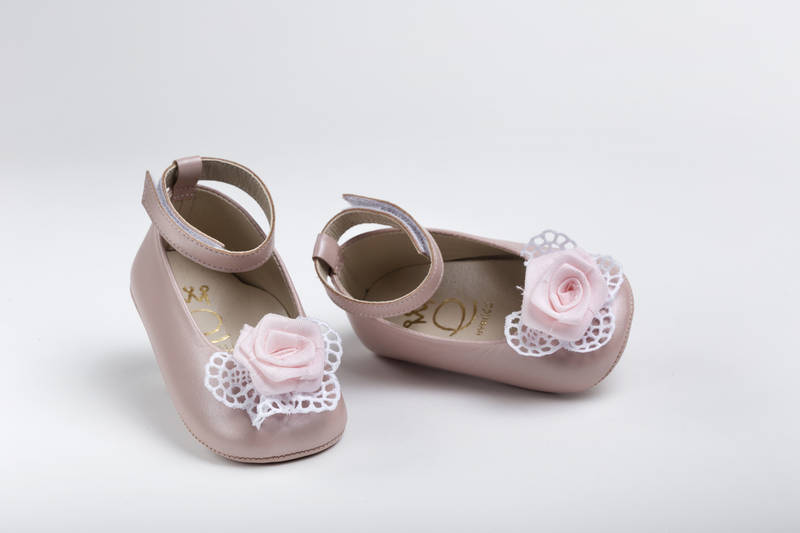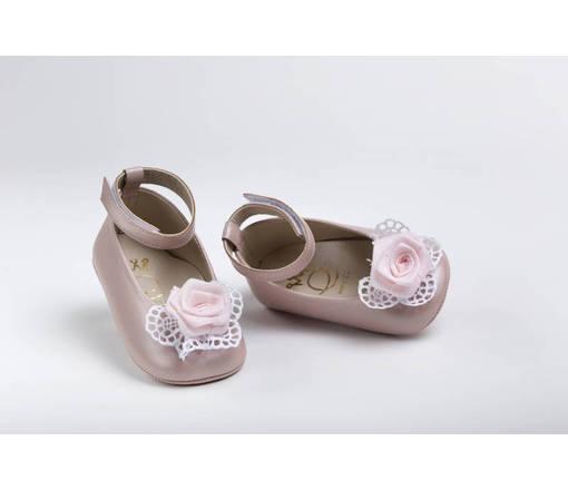 Κ2201Ρ Μπαλαρίνα αγκαλιάς από ροζ δέρμα, διακοσμημένη με βαμβακερή δαντέλα και λινό ροζ τριαντάφυλλο,