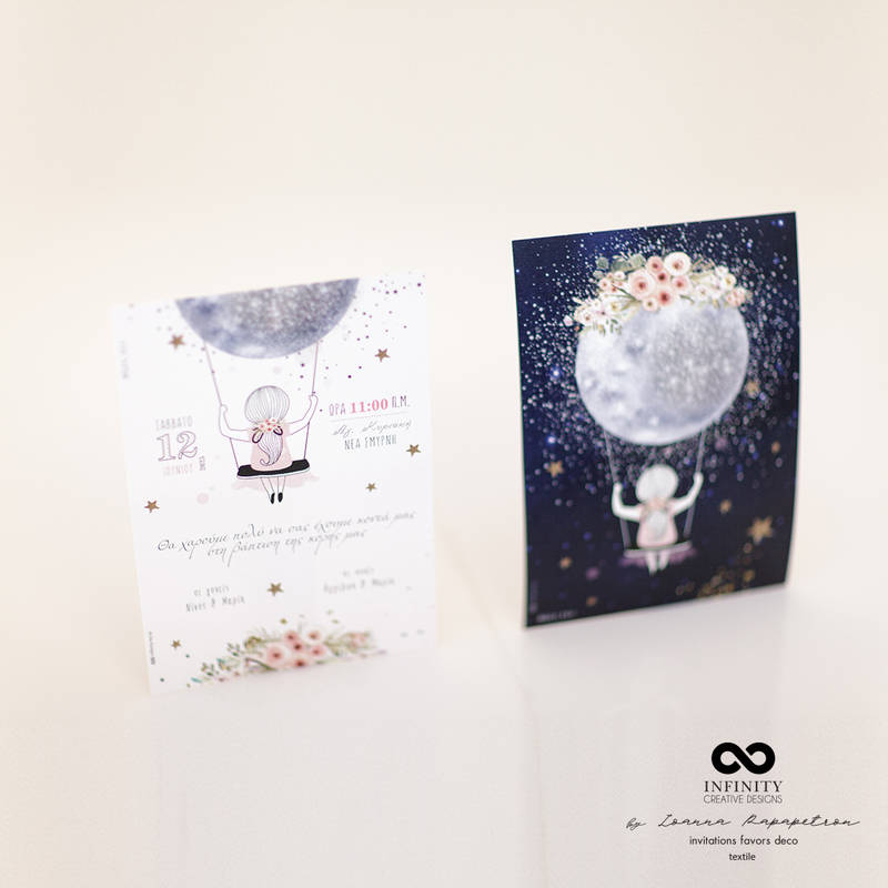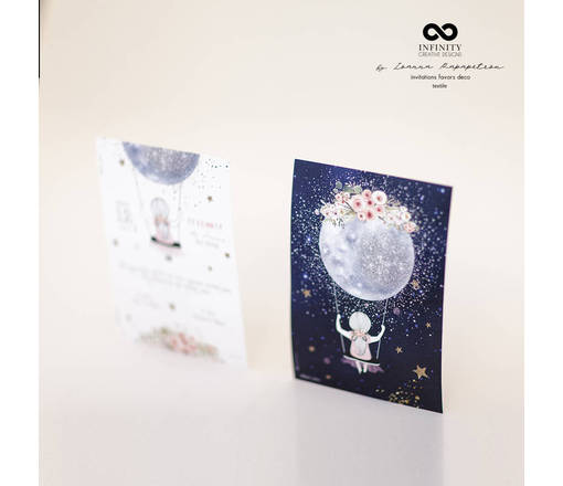 Προσκλητήριο βάπτισης με θέμα ' Φεγγάρι '