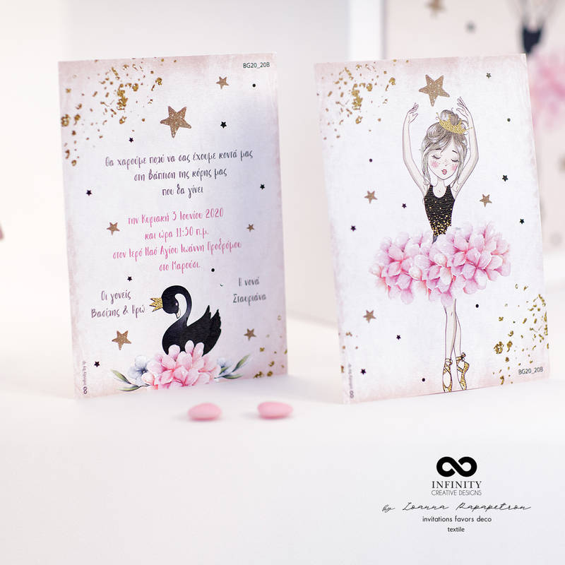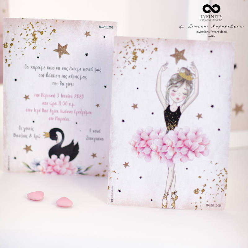 Προσκλητήριο βάπτισης με θέμα ' Μπαλαρίνα '