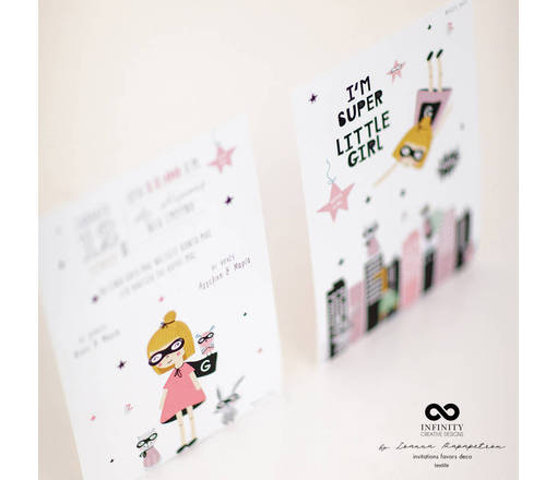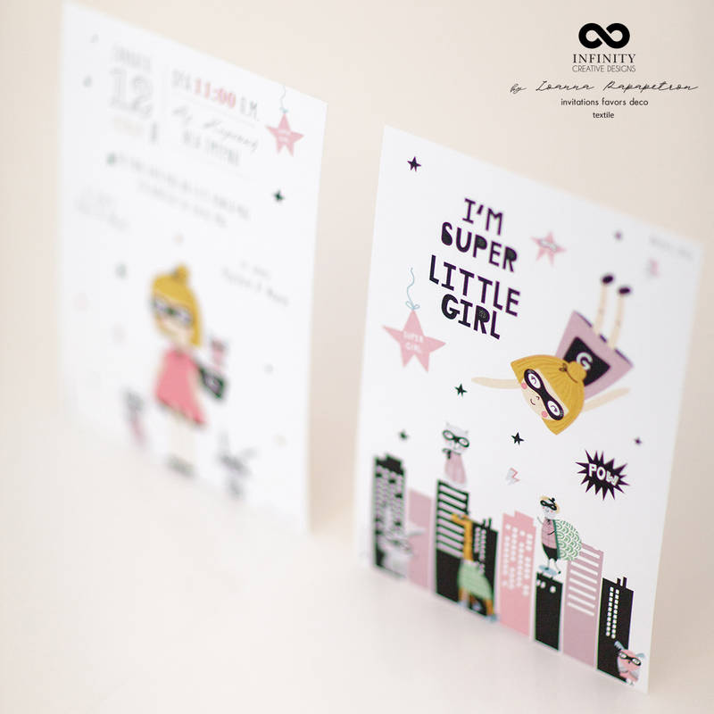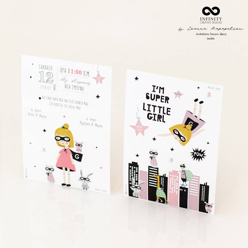Προσκλητήριο βάπτισης με θέμα ' Σούπερ κορίτσι '
