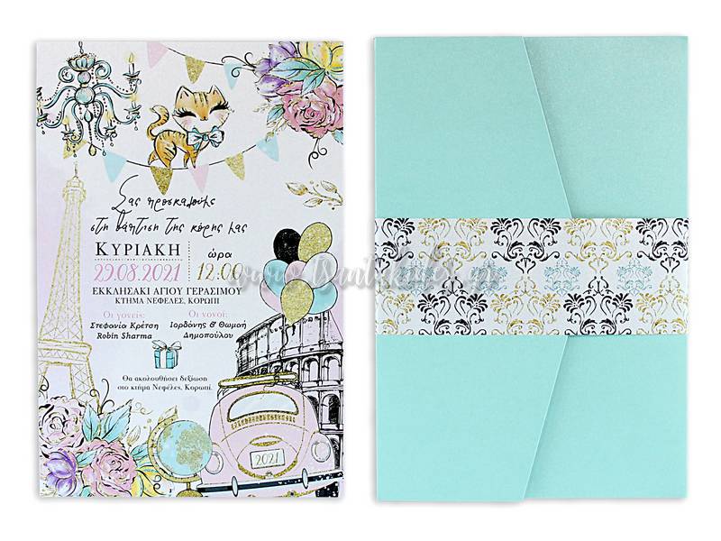 Προσκλητήριο βάπτισης για κορίτσι με θέμα το travel girl
