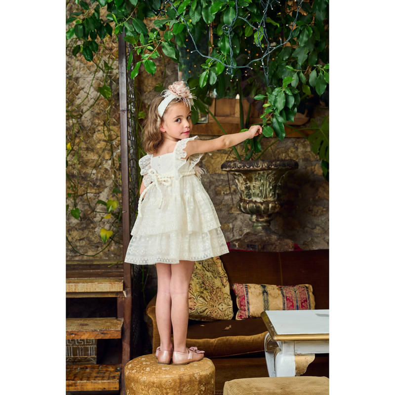Φόρεμα βάπτισης από βαμβακερή δαντέλα σε εκρού απόχρωση