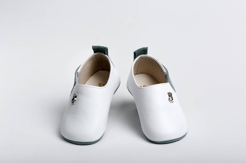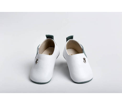 Α2200Β Παπουτσάκι αγκαλιάς από λευκό δέρμα και λεπτομέρεια από μέντα καστόρ, κλείσιμο με Velcro, νούμερα 16-19