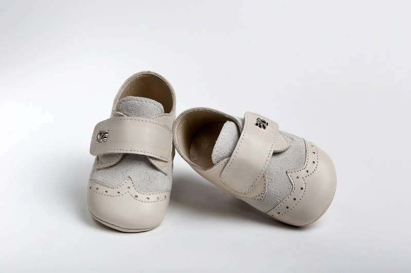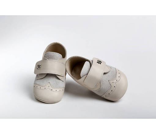 Α2201E Παπουτσάκι αγκαλιάς χαμηλό από εκρού δέρμα και καστόρ, κλείσιμο με Velcro, νούμερα 16-19