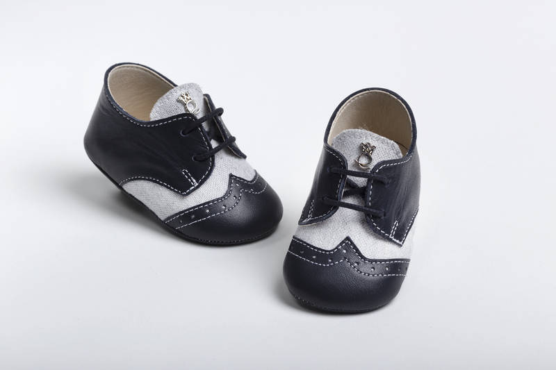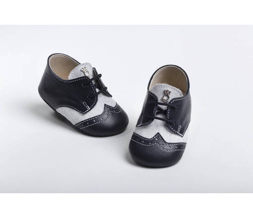Α2202Α Παπουτσάκι αγκαλιάς χαμηλό δετό από μπλε navy δέρμα και γκρι ύφασμα,