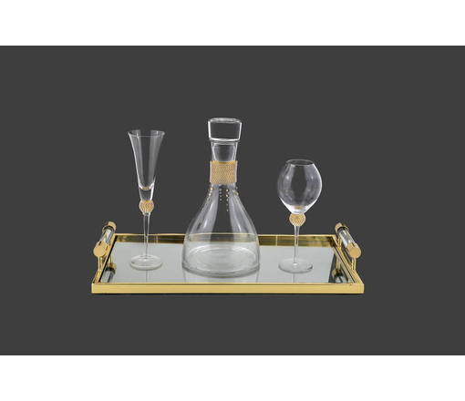 - Ποτήρι με χρυσή τρέσα από strass στη βάση του ποτηριού.