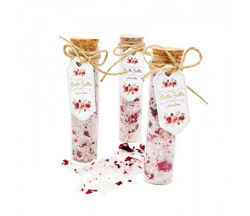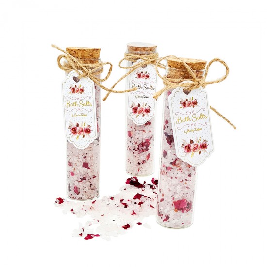Άλατα μπάνιου με αποξηραμένα ροδοπέταλα 80gr μέσα σε γυάλινο δοχείο 2,5x12,5cm με άρωμα wild rose