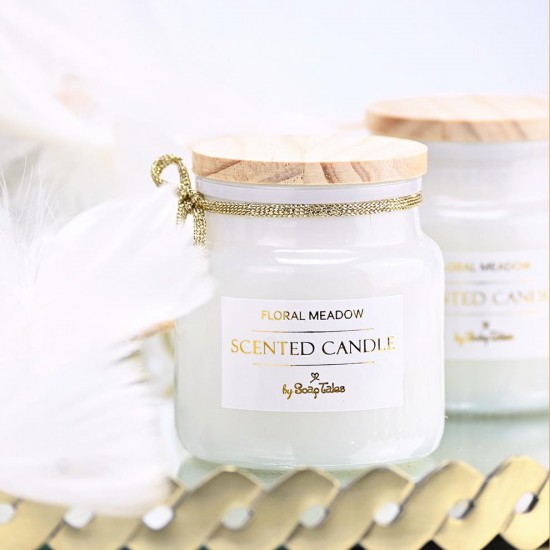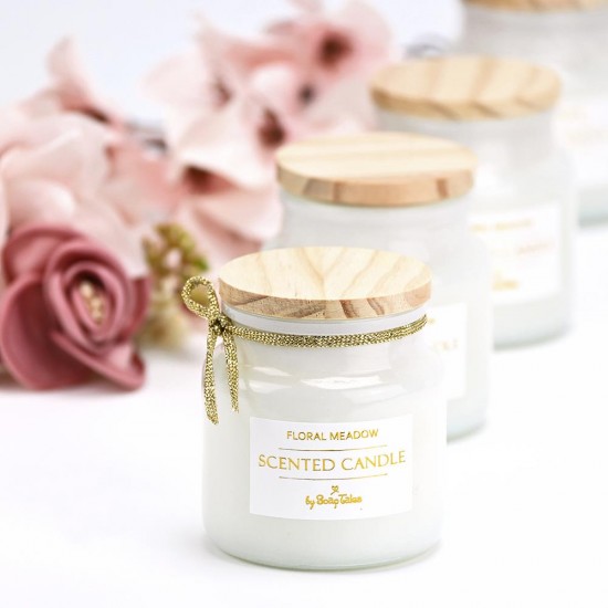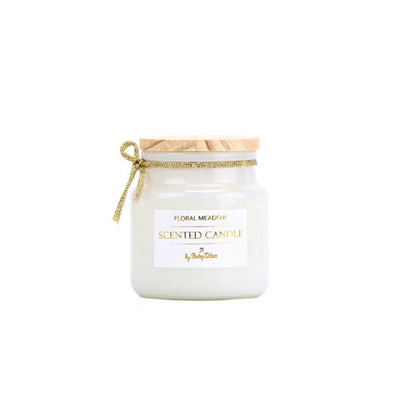 Κερί λευκό floral meadow με ξύλινο καπάκι