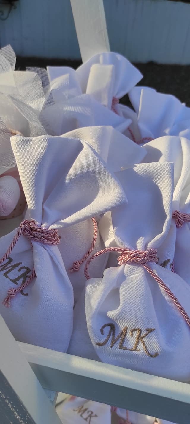 Mπομπονιέρα πουγκί με αρχικά