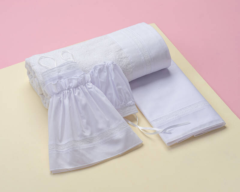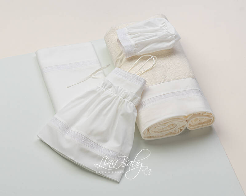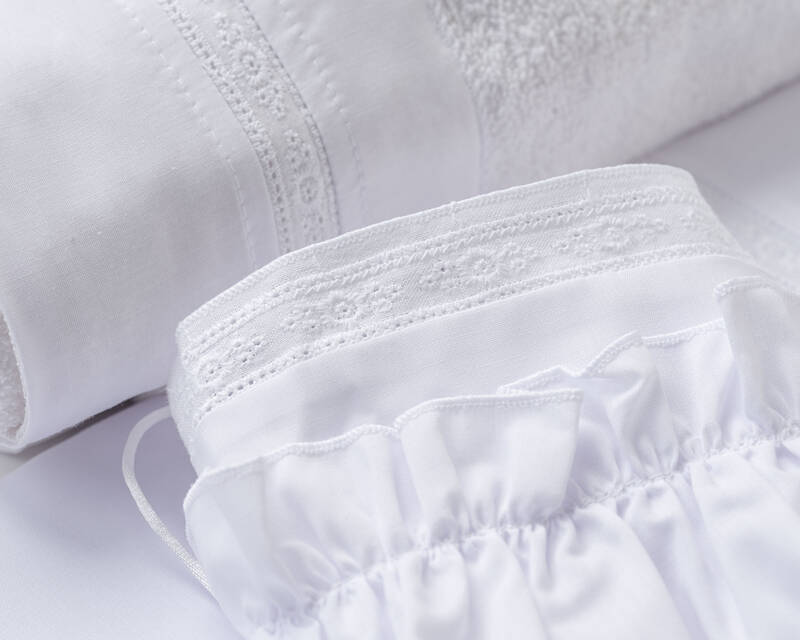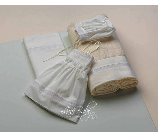 Βαμβακερό σετ λαδόπανου σε δύο χρώματα λευκό και ιβουάρ, με διακοσμητική βαμβακερή φάσα και τρέσα δαντέλας Broderies Anglais.