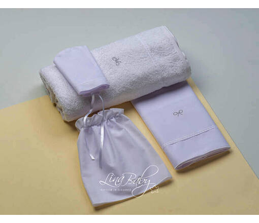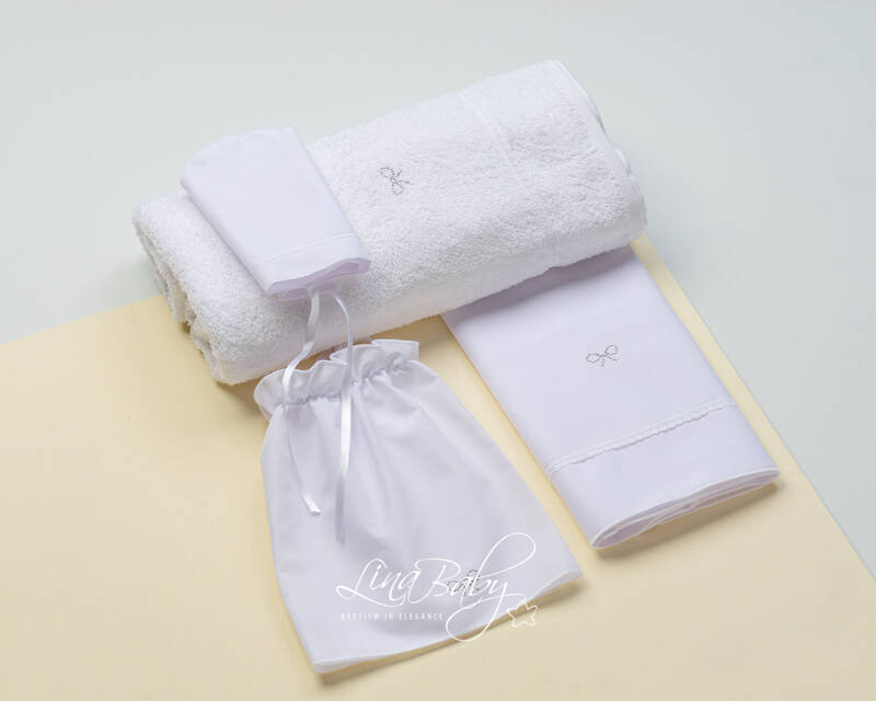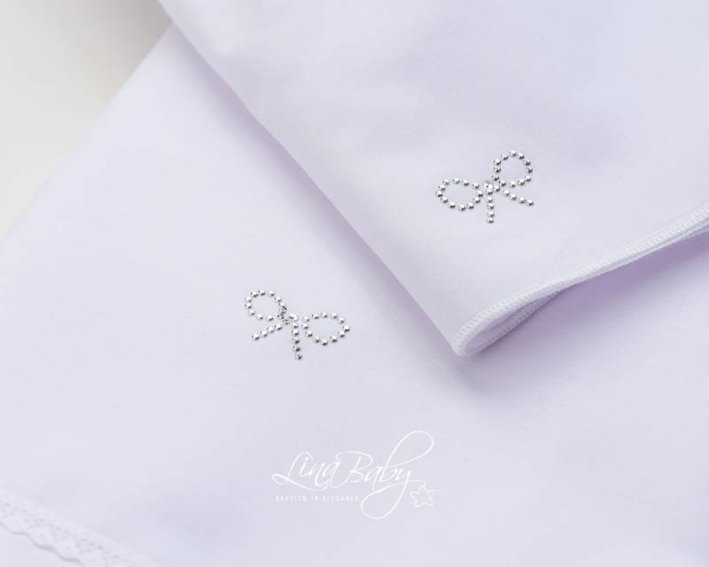 Βαμβακερό σετ λαδόπανου σε δύο χρώματα λευκό και ιβουάρ με διακοσμητικό φιογκάκι από στρας.