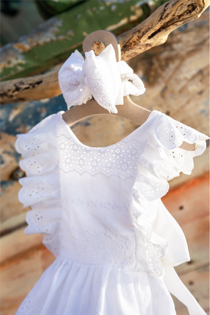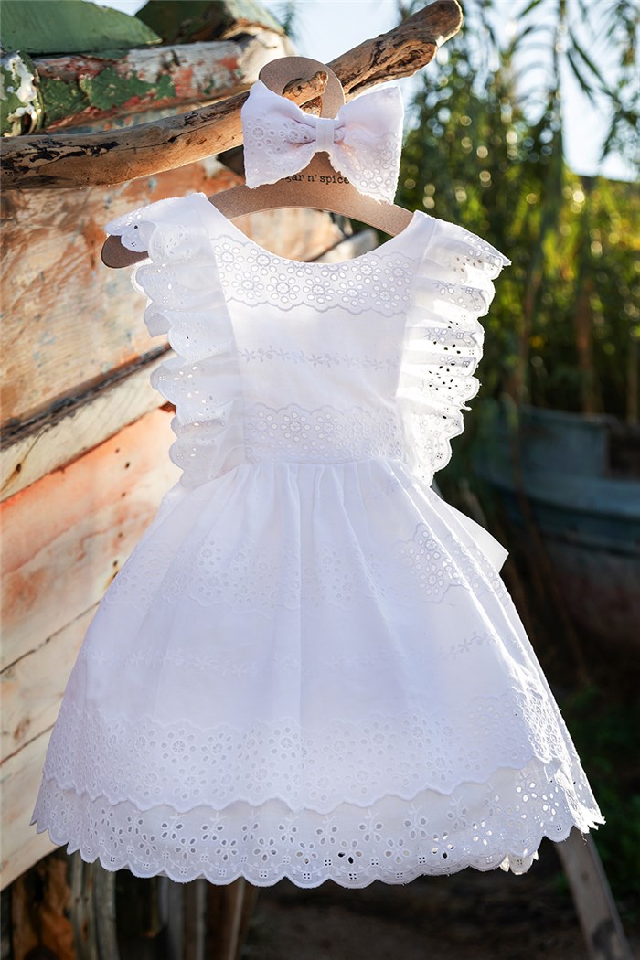 Το φόρεμα είναι φτιαγμένο από βαμβακερό Broderie ύφασμα και βαμβακερό κέντημα.