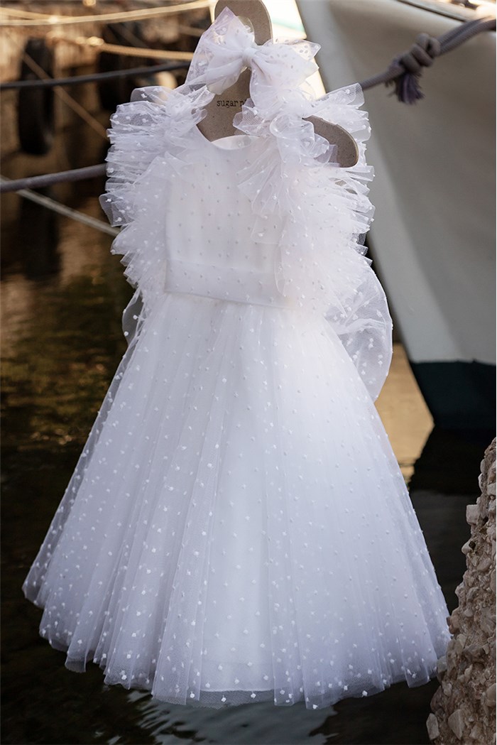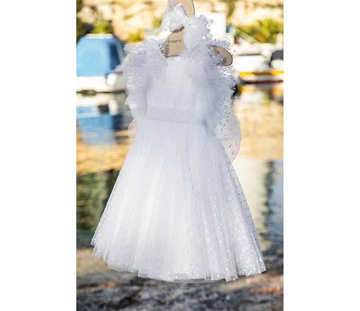Στη μέση και πίσω έχει ζώνη με μεγάλο φιόγκο από το ίδιο ύφασμα.