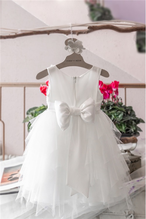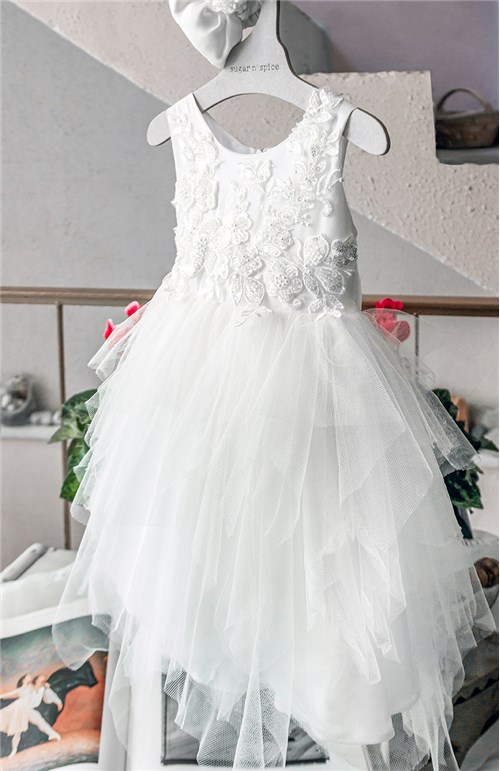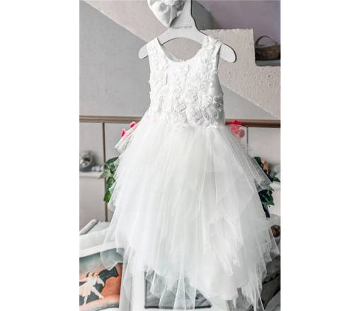 Η φούστα του φορέματος είναι φτιαγμένη από πολλές σειρές ασύμμετρο μαλακό τούλι.