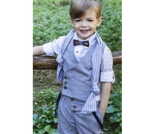 Ένα σετ της συλλογής Printemps 2023 σε τουίντ blue indigo απόχρωση . Γιλέκο με πλάγιο κούμπωμα, λευκό λινό πουκάμισο και παντελόνι με πιέτες και λοξό κούμπωμα, δίχρωμο φουλάρι , τίράντες, ξύλινο παπιγιόν ,καπέλο ψάθινο ή μπερές .