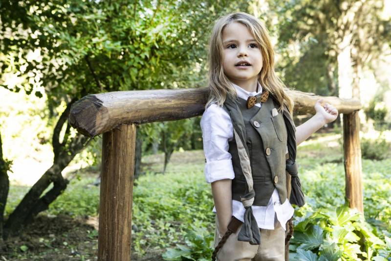 Μία πολυ ξεχωριστή πρόταση της ΒΑΒΥ ΒLΟΟΜ σε χακί και μπέζ αποχρώσεις ,σετ βάπτισης 7 τεμαχίων που περιλαμβάνει παντελόνι μπέζ , το πουκάμισο είναι λευκό λινό και γιλέκο χακί λινό πλάγιο. Στο σετ περιλαμβάνονται επίσης τιράντες ,ξύλινο παπιγιόν ,δίχρωμο φουλάρι και ψάθινο καπέλο ή μπερές.