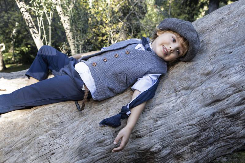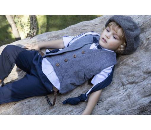 Σέτ βάπτισης Baby Bloom της συλλογής Printemps 2023 σε αποχρώσεις μπλε- σιέλ. Το σετ περιλαμβάνει γιλέκο μπλε με ιδιαίτερο σχέδιο , πουκάμισο oxford σε σιέλ απόχρωση και παντελόνι μπλε καμπαρτίνα με ανάγλυφη υφή ,τιράντες , υφασμάτινο παπιγιόν ,δίχρωμο φουλάρι και ψάθινο καπέλο ή μπερές.